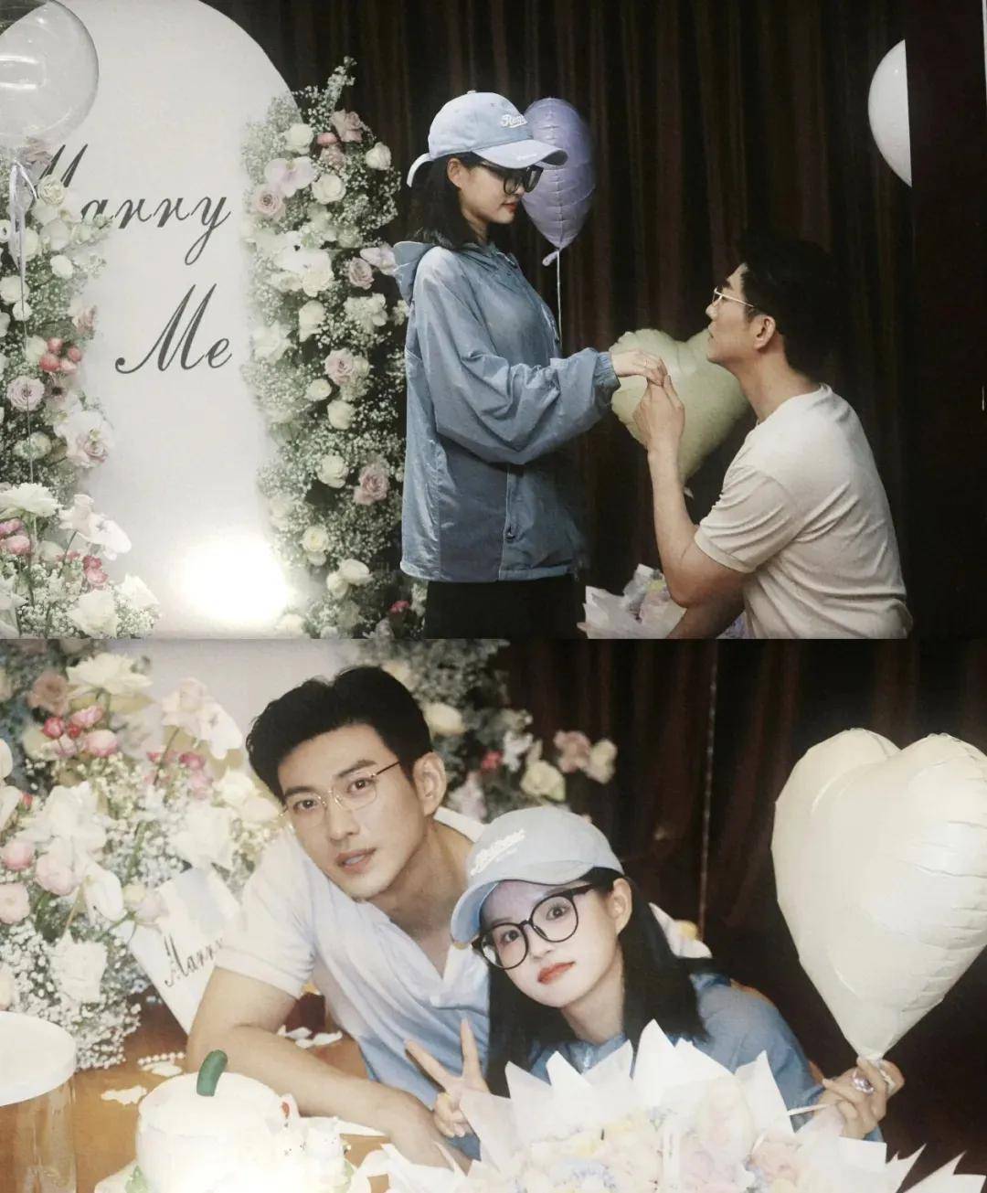 2025年7月,于龙在短剧杀青宴上突然求婚,满场都是“Marry Me”的气球,他单膝下跪递上戒指的那一刻,杨咩咩哭着说“我愿意”,这段视频传到网上直接冲上热搜,曝光量都破亿了。